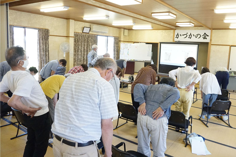 平成27年に設立されました。目的は後期高齢者の社会参加の場の提供と健康管理も含めた支援活動です。原則、偶数月の第2金曜日に、芝原公会堂で行っています。みんなで楽しく歌う音楽や、脳トレ、健康体操、そしてフレイル予防活動も行っています。